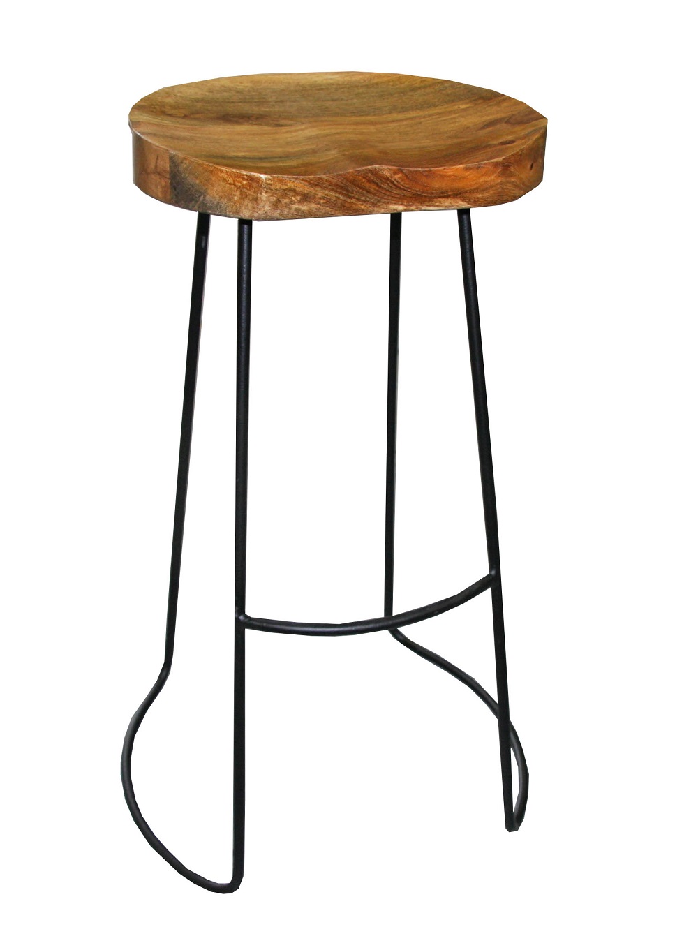 Bar stool with comfortable moulded elm wood seat, and metal legs.