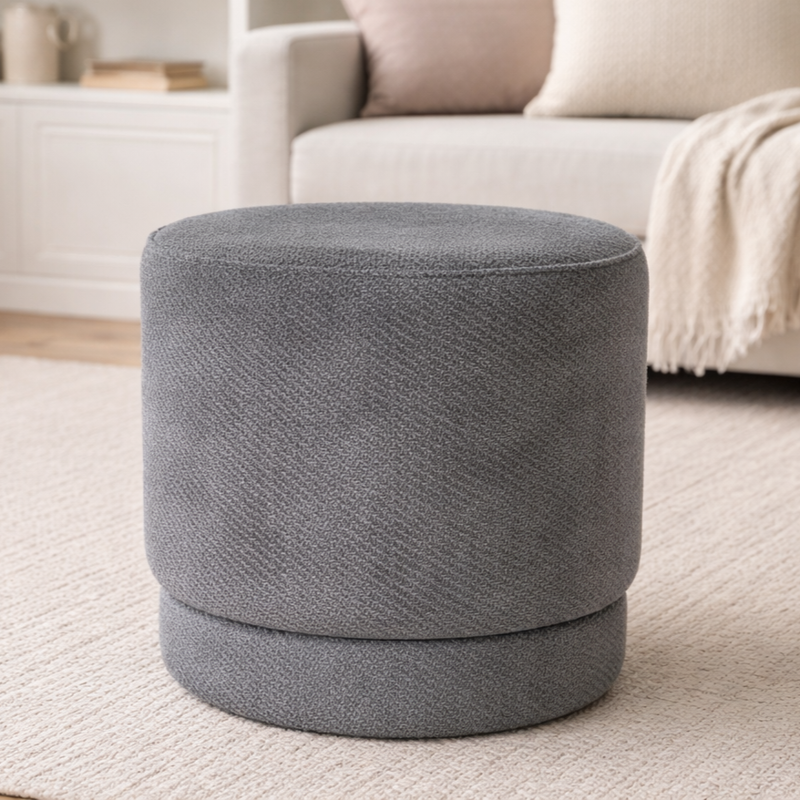 Add a touch of style and versatility to your home with the Izzy Round Puff. Designed for comfort and practicality, this fully upholstered round puff is perfect as a footrest, extra seating, or a stylish accent piece in any living space.