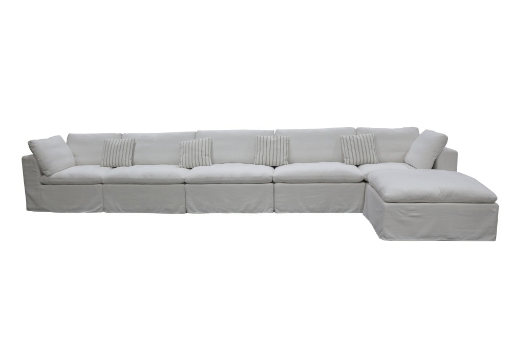 Introduce modern flair and luxurious comfort to your living space with the York Chaise Suite accompanied by an Ottoman. This versatile set comprises two arm pieces, three armless pieces, and an ottoman, offering flexibility in arrangement.