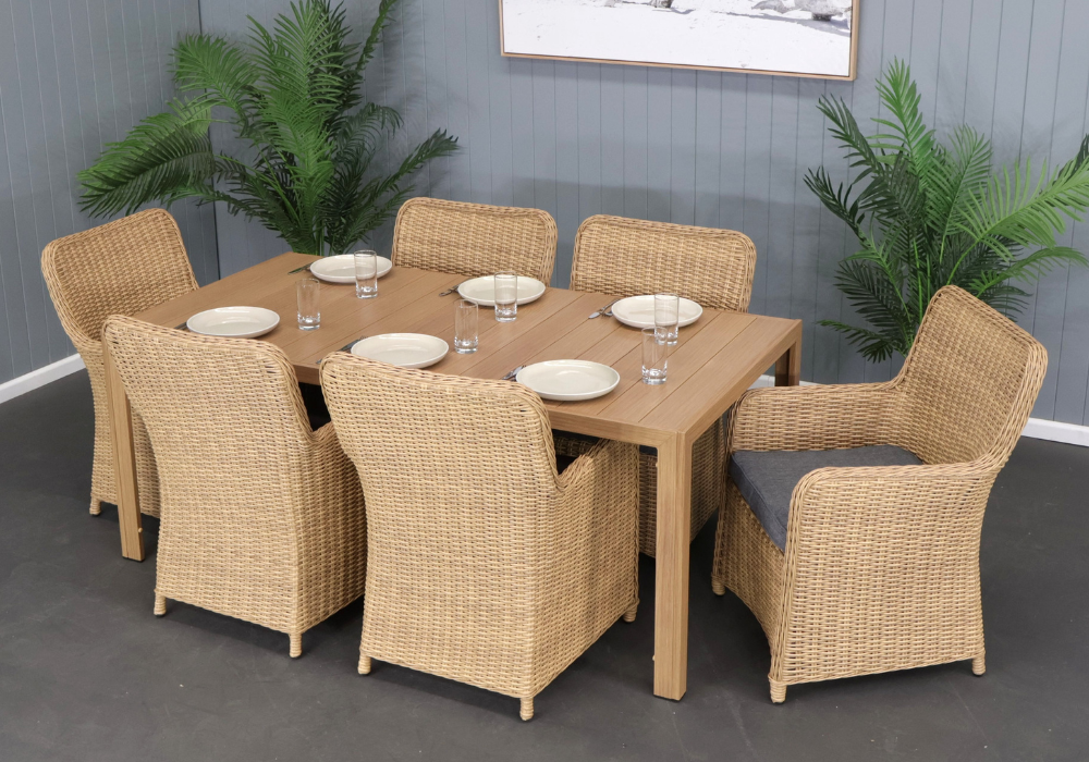 Transform your outdoor space with the elegant Capricorn Outdoor Dining Suite. This stunning 7-piece set is designed to complement any décor, combining modern aesthetics with superior comfort and durability.