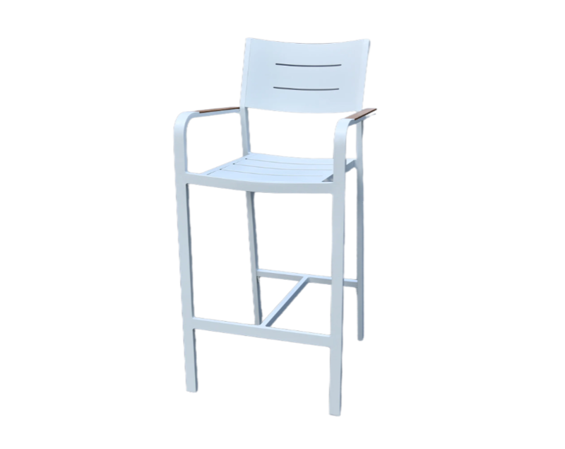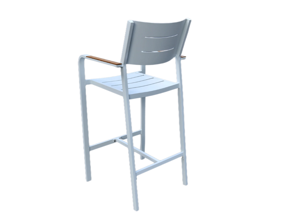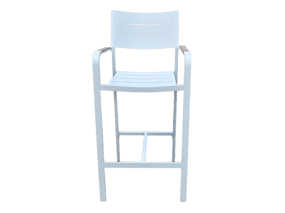 Add style and comfort to your outdoor space with the Corsica Bar Chair. Designed with a high-quality aluminum frame coated with a white powder finish and complemented by durable teak slats, this chair offers a rust-resistant, weather-resistant, and low-maintenance seating option perfect for outdoor relaxation and entertaining.