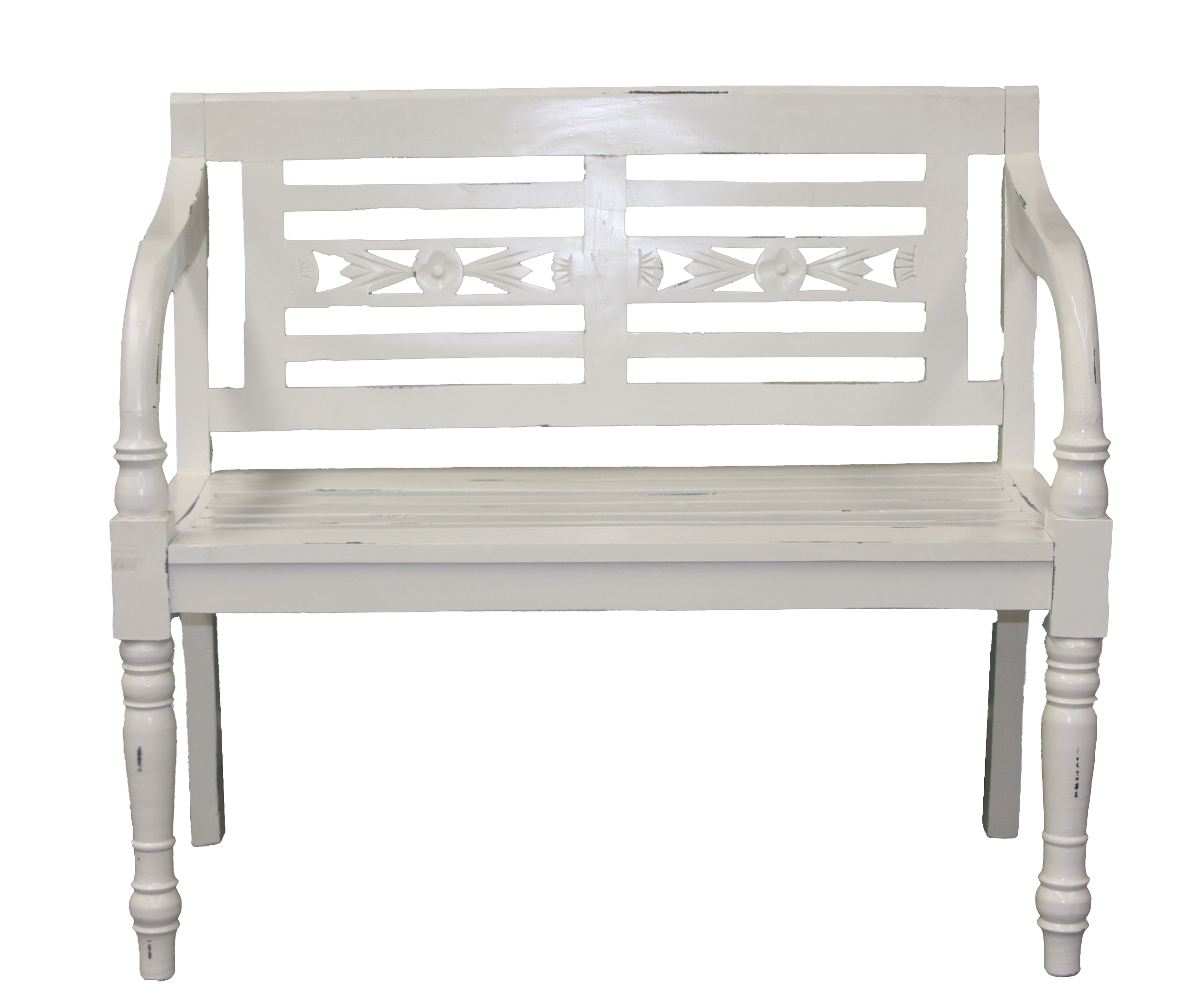 The Bench Seat White is made from Mahogany Wood and features a distressed white look.