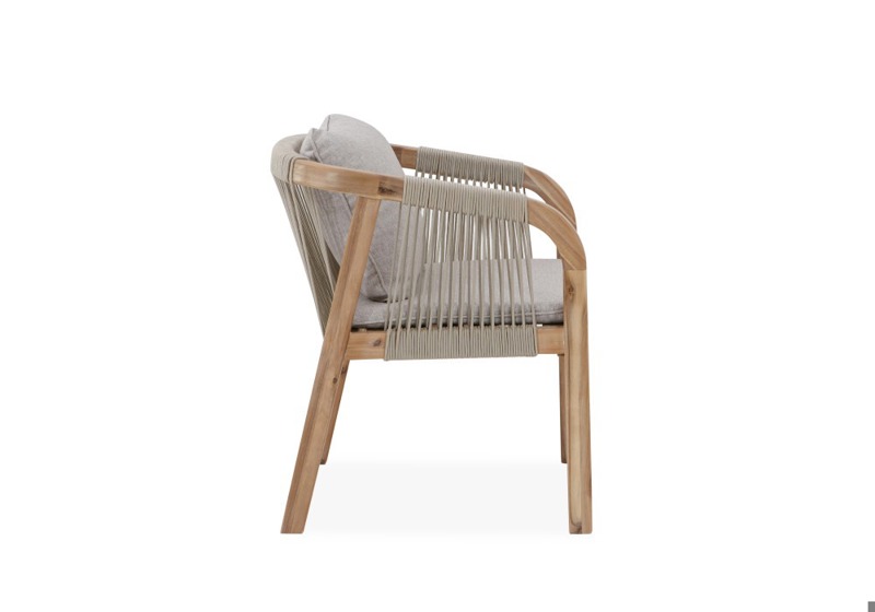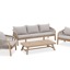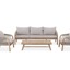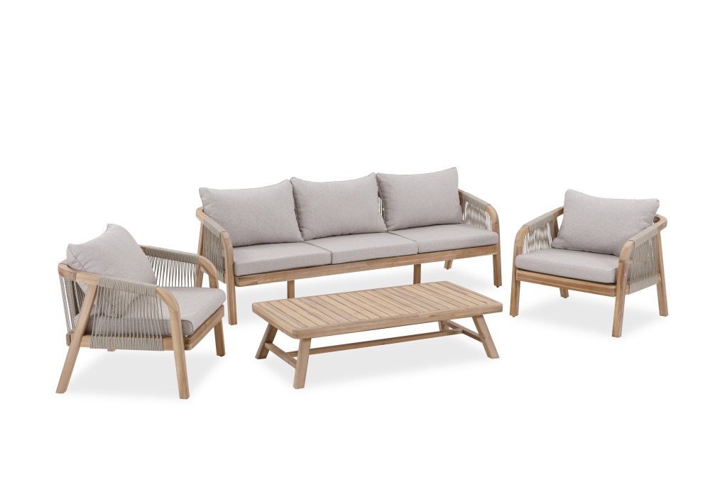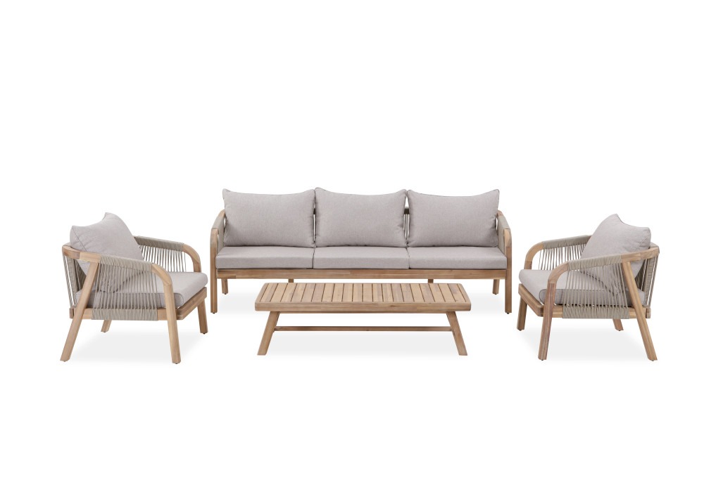 Relax in style with this Coffee Table Set. Featuring plenty of sitting space, this set is roomy without taking up too much space. The table and chairs are made from natural Acacia Wood, with soft, ivory-grey cushions.