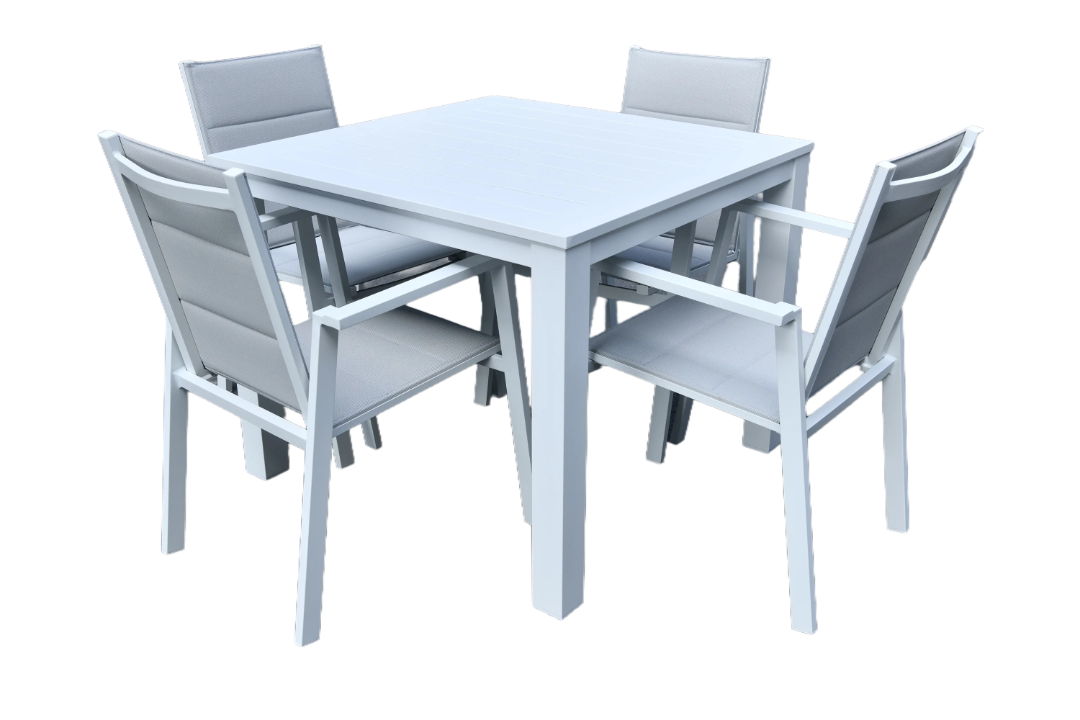 The Portsea 900 5pce Dining Suite is the ultimate outdoor dining set, combining contemporary design, durability, and comfort. With a spacious dining table and five comfortable armchairs, this suite is ideal for gatherings, family meals, and outdoor entertaining. Designed for easy maintenance and long-lasting performance, the Portsea suite enhances your outdoor space with style.