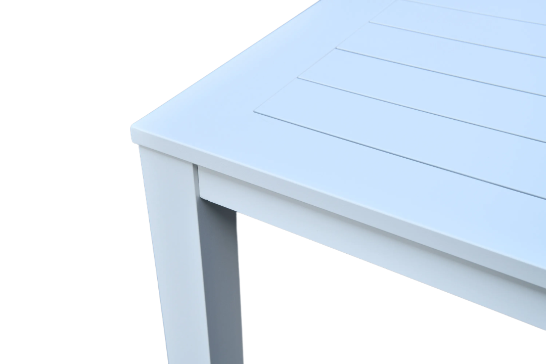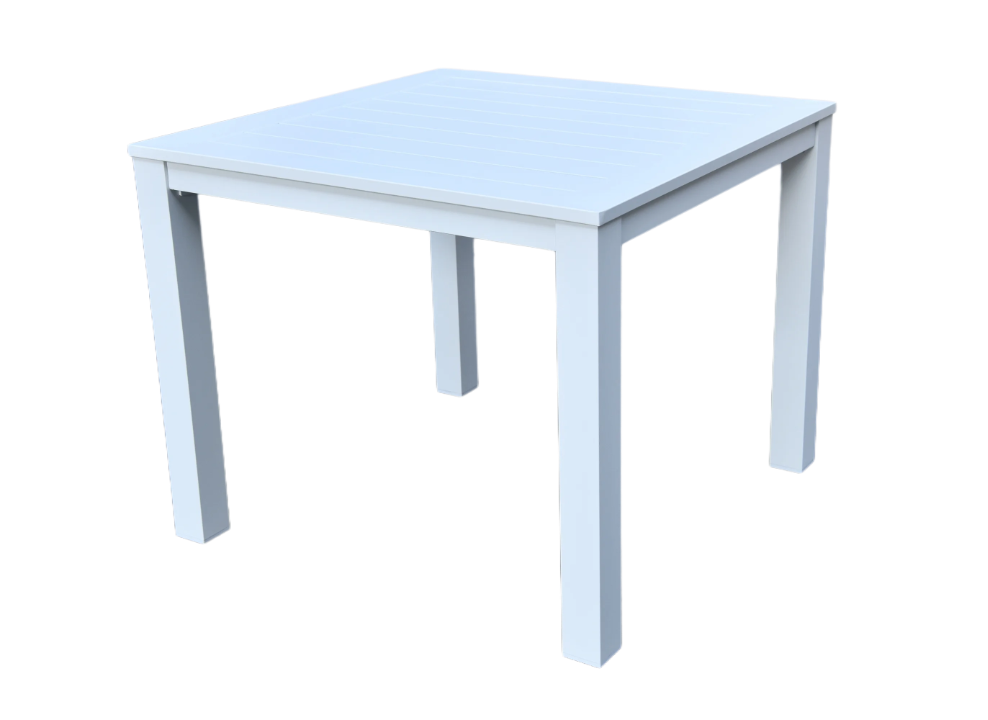 Elevate your dining space with the Portsea 900 Square Dining Table, perfect for creating a modern and inviting atmosphere. Crafted with a durable aluminium frame featuring a sleek white powder-coated finish, this table is designed for both style and practicality.