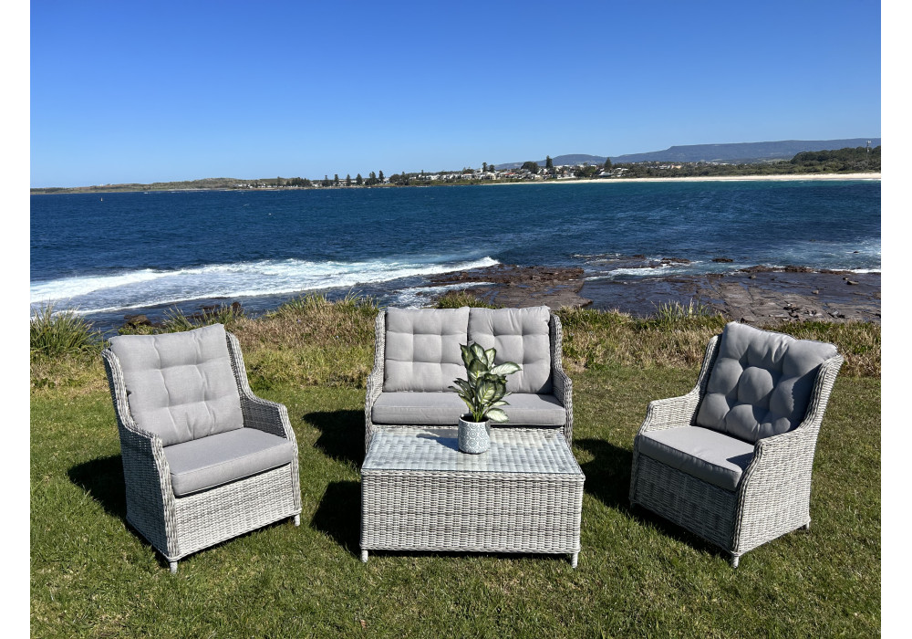 This premium lounge set is designed to elevate your comfort and help you relax. Crafted from a sturdy half-round wicker, this set is perfect for outdoors.