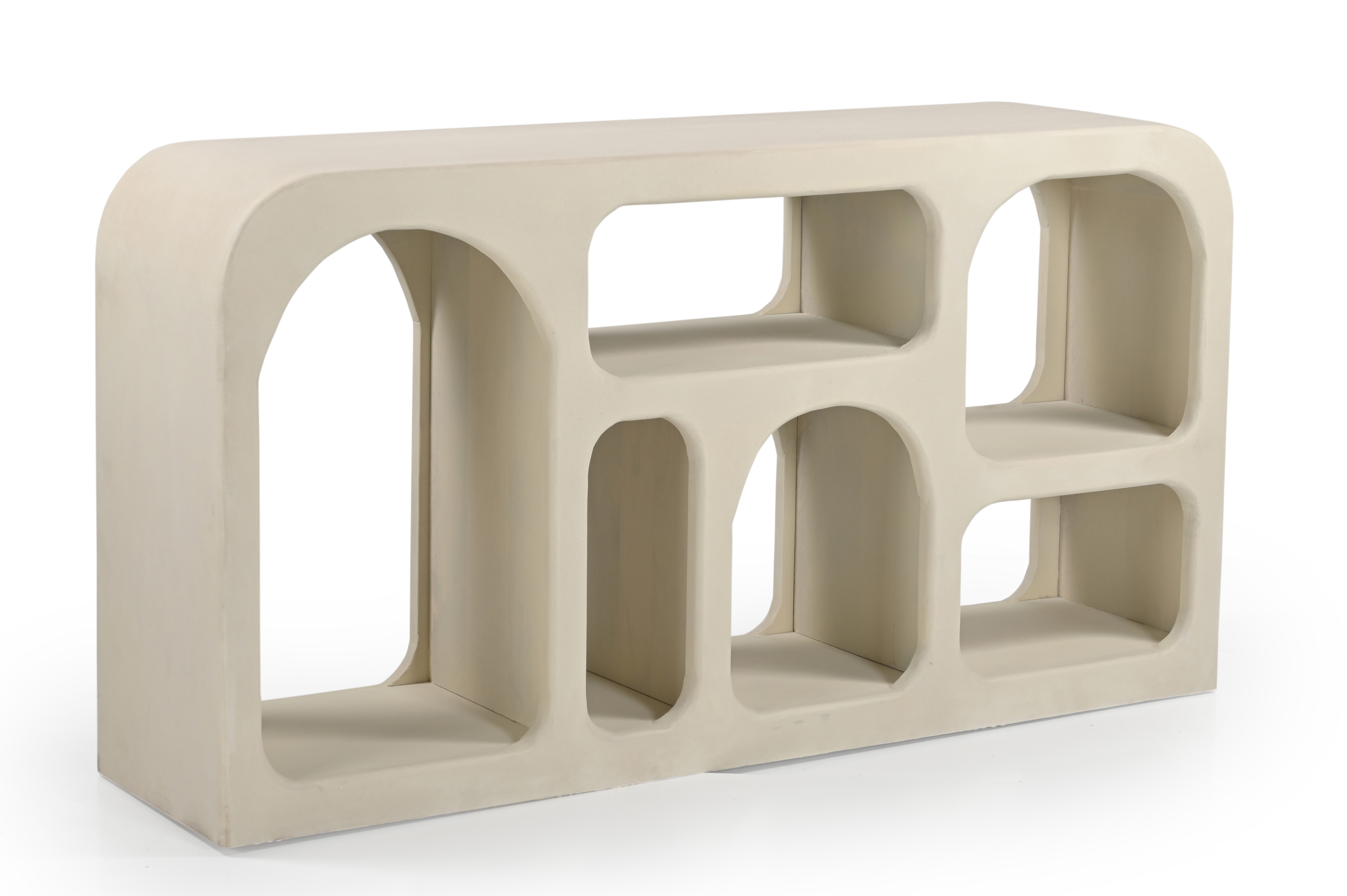 Made from beautiful Mango Wood, with a Cream concrete-finish, the Sahara Low Bookcase is an exciting piece that will make any room stand out.Products are clearance items and sold as is – some imperfections may be present.